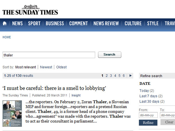 Nikakršno presenečenje ni, da je celo tednik Sunday Times EU poslanca Zorana Thalerja obtožili korupcije ko bi ga lahko tudi še kakšne druge nečedne rabote. Novinarji predstavljajoči kot lobisti, so Thalerju ponudili podkupnino, ki jo je v ponudbi sprejel. S tem je jasno pokazal, da praktično nikoli ni delal v dobrobit slovenskega naroda, temveč le za osebne interese. Poznavalci bi mu z lahkoto prilepili celo zadeve s podjetjem Eon (linije preko Nemčije), ki jo je dobrohotno z hudimi dolgovi in finančnimi luknjami odkupilo na davkoplačevalska sredstva v preteklosti NLB kot protiuslugo starim »rdečim« kadrom!