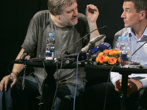 Zizek je slaven samo po svojem gobezdanju in pljuvanju po poslusalcih,pa po svoji presvicani majici,ki smrdi do neba!