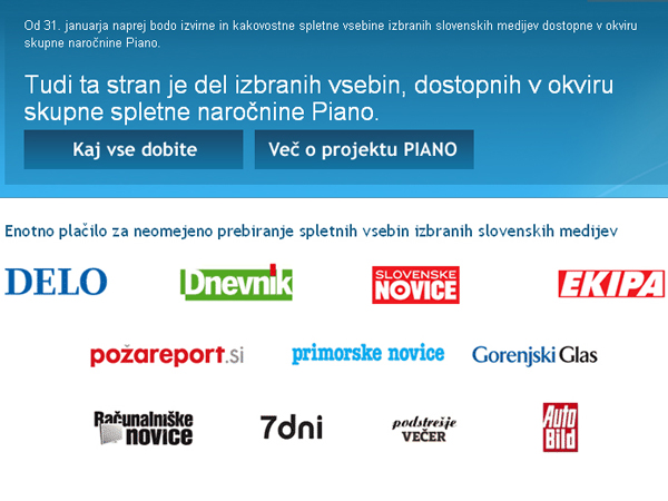 najblje da prosimo karela mi upokojenci da nam plača , ali še bolje bo da plača bahati janez. ne vem kako so to mislili da v takšni krizi še plačuješ da jih bereš prek int. itak ne kupiš časopiš ker ni denarja. kdo lahko kupi in plača položnice pa živi do naslednje pok. z 300 eu. alo. in to so samo up. kje pa so ostali??? torej nič branja, ostane še tv. da nekaj vendar imamo in to je to. mislim da bodo kmalu ukinili to bezvezno s..r...
