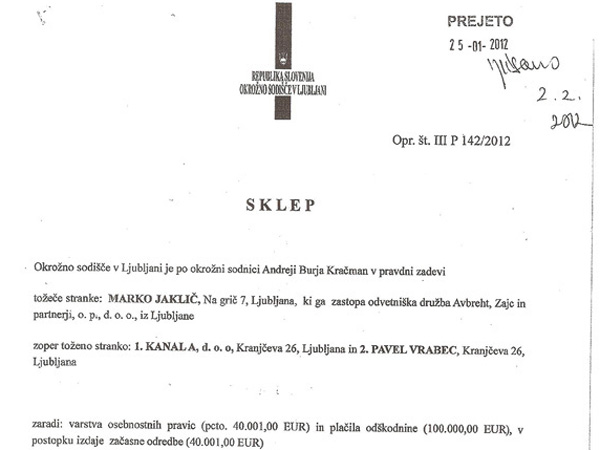 Pa ne zaradi tožbe, ker je te Jaklič že napovedal, ampak zaradi HITREGA delovanja sodišč.