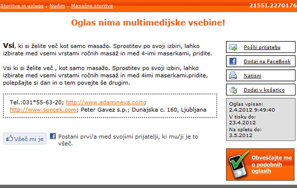 Moje mnenje je, da gospod Gavez tega oglasa ni napisal.