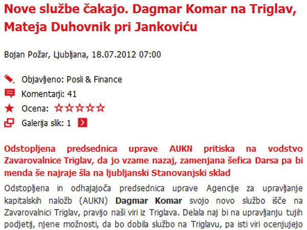Meni se zdita Golob in Komarjeva pametna človeka, s pravo mero razuma in predvsem spoštovanja do neke javne funkcije, ki jo opravljata. Zato ni bistveno, kam odhajata. Nasprotno pa tega ne bi mogel reči za , kot se je nekdo izrazil, Župnikovo. Bolj bi me presenetilo njeno negiranje odhoda k Jankoviču. Vendar, predvidljivo, vse poti takšnih nepridipravov vodijo na magistrat. Tam dobijo službo in politični azil. Dokler so tam, je nad njimi le nebo. In bog, če verjamejo vanj.