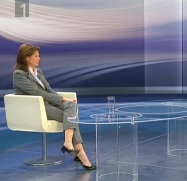 Ja pingvinka ne zgleda kot na lepotnem tekmovanju, temvec kot na kurben..., z mini kiklco ( ki ne pase na tak nivo ) primitivno razkazuje debele noge in slamo v glavi ( zgleeda kot vzhodno evropska kurb... v Bruslu ) Od osamosvojitve nas ni bilo se tako sram!