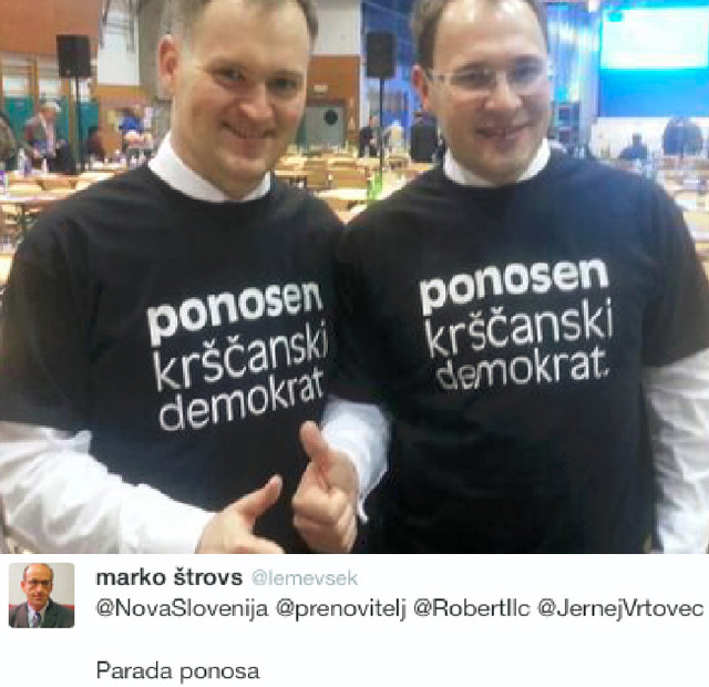 Evo še Tonina, objetega z Nino Movrin, donedavno gorečo članico Jelinčičeve SNS. Ko pa ji je pred nekaj meseci prišlo, da preko ugašajoče stranke ne bo prilezla nikamor, je hitro prestopila v NSi in je pri Toninu v kamniškem občinskem svetu tudi svetnica. Je žena Jnija Pavca, frontmena turbofolk skupine Atomik Harmonik.Fotka je posneta na kongresu NSi na Vranskem.