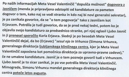 Ah dej Bojan no, kot prvo ni Vesna ampak je Meta. Kot drugo pa, zakaj pa nisi nič napisal o aferah Vrhunca. A filmčke se kar tako snema??? Prej si bil skoz tiho. Prav očitno je, da navijaš za njega. A je tebi tud kakšen vrstni red zrihtal, da mu tko na dušo pihaš? Na tvojem mestu bi bila bolj korektna, da te bom še naprej brala in verjela tvojim člankom. Sej Karel je tud vredn svojega denarja, ampak ni pa vsega on kriv!