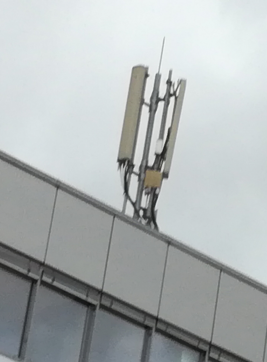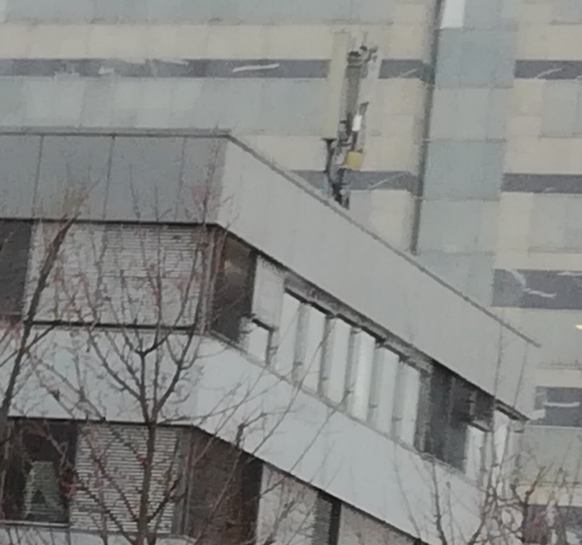 Dne 16.1. 2020 smo ob 13.45 uri merili radiofrekvenčno mikrovalovno sevanje bazne postaje 4G mobilne telefonije, ki se nahaja na stavbi telekom operaterja A1 v BTC Ljubljana. Testna antena 5G (na frekvencah do 3,55GHz) v času meritve ni delovala. Meritev je bila opravljena z merilcem Cornet ED88T Plus. 4G antena je v času meritve oddajala mikrovalovne frekvence od 1250MHz do 2037MHz (2,03GHz) z največjo jakostjo mikrovalovnega sevanja 9,18mW/m2