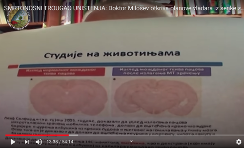 Dr. Milošev domneva, da je bila na primer Srbija že v letu 2019 pokrita z antenami omrežja 5G, saj je bila vsaka druga beseda premierke Ane Brnabič: Digitalizacija. Podatek iz leta 2016 kaže, da je Telekom Srbija imel pokritost 99, 7% teritorija Srbije. Operater Telenor ima pokritost 99,4% teritorija in VIP mobile ima pokritost 99,1%. Ko se vse tri mreže prekrijejo, bi bila Srbija v celoti prekrita z baznimi postajami mobilne telefonije. Bruselj, Švica in Slovenija imajo moratorij na uvajanje omrežja 5G. Zakaj tega ni storila tudi Srbija? Bazne postaje mobilne telefonije se postavljajo na razdalji od 50m do 100m. Gre za veliko količino energije, ki jo oddajajo te bazne postaje in ki pada s kvadratom razdalje. Zato so postavili zelo zgoščeno mrežo anten. Tako nastaja elektromagnetni smog, ki seva in ima škodljiv vpliv na živa bitja. Bazne postaje postavljajo na visokih stavbah in hribih in so lepo vidne na visokih stebrih. Nasproti stanovanja dr. Miloševa v Kragujevcu je stolp v obliki novoletne jelke. Bazne postaje so lahko tudi skrite.