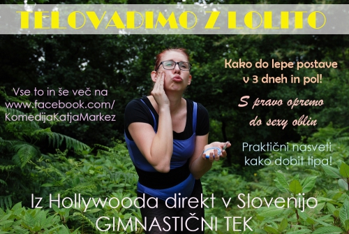 Oglej si moj novi video, ki je nastal kot parodija na vse tiste "sezonske tekačice posebne vrste", ki sem jih srečevala v začetku poletja. Tako nam Katja Markež v vlogi Lolite poda zelo koristne in uporabne inštrukcije, in sicer kako v 3 dneh in 7 korakih osvojiš tipa in idealno postavo, pri čemer izveš novo Hollywoodsko senzacijo, ki je sedaj dosegljiva tudi pri nas: GIMNASTIČEN TEK IN NASVETI KAKO DOBITI TIPA!