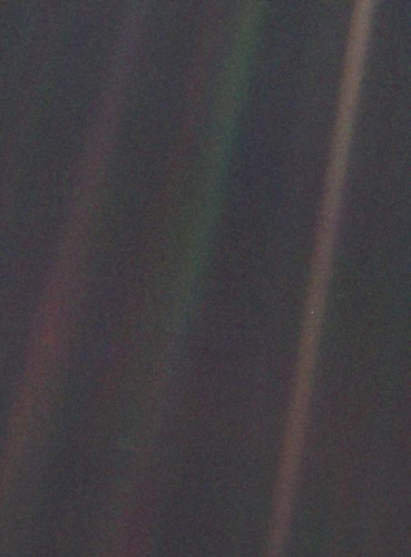 Slavno fotografijo Bledikava modra pika (AS17-148-22727) je Voyager 1 posnel 14. februarja 1990 z razdalje šestih milijard kilometrov torej že precej za Plutonovo orbito. Na njej je Zemlja velika le 0,12 piksla. Foto: Nasa/JPL