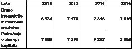 Razlika med bruto investicijami v osnovna sredstva in potrošnjo stalnega kapitala (amortizacijo) so neto investicije. Neto investicije so v vseh štirih opazovanih letih (2012 - 2015) negativne.