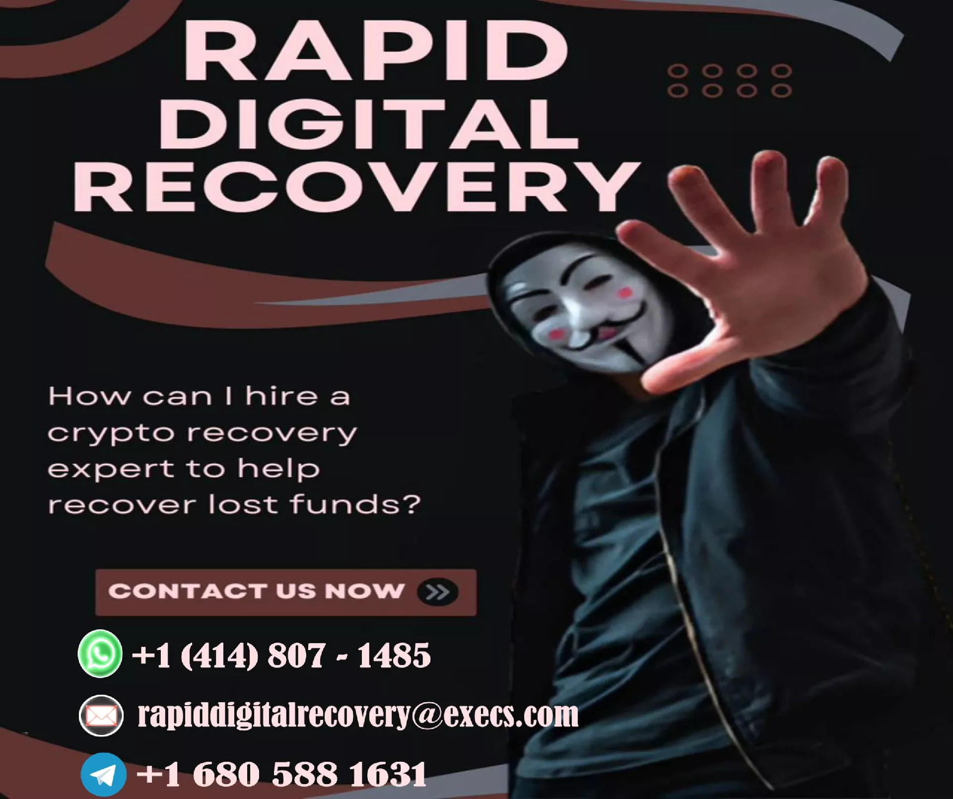 The day when I deleted the wallet file from my external drive by mistake still haunts me everyday. I had saved all of my bitcoin there believing that this is the safest location to be. With one single mis click, all the backups were gone. In that lost file were $52,000 worth of bitcoin. I was pathetic, like I had destroyed my own life over a simple careless move. I spent days on the internet trying out recovery tools with no luck. I then joined a discussion forum where people face real-life instances of crypto loss. I found a very long thread with several recommendations of Rapid Digital Recovery. People described how they felt like they had no hope until this company helped them out. What prompted me to actually proceed was the memory of two friends who had already used the same service. They both had previously told me how Rapid Digital Recovery restored what they had lost in bitcoin. I contacted them again for confirmation, and they both encouraged me to go ahead. That gave me the confidence. Email: rapid digital recovery (@) execs. com The first email I sent to Rapid Digital Recovery was answered in a timely and polite manner. They walked me through step by step patiently and asked me to provide the few details I still had in my memory. No pressure at all, merely careful guidance. Waiting wasn't pleasant, but they never stopped keeping me informed. WhatSapp: + 1 4 1 4 8 0 7 1 4 8 5 A few days later, I checked my account and the miraculous had happened. My fifty two thousand dollars of bitcoin was all there. I sat there in stunned silence, not quite believing my eyes. The feeling of having that balance returned was one which I will never be able to forget. Telegram: + 1 6 8 0 5 8 8 1 6 3 1 Rapid Digital Recovery turned my unsuccessful mistake into a do-over. They were competent and truthful in a field that is full of scams. Now when I hear someone say they lost a wallet, I instruct them not to freak out but to call the same company. It worked for me, it worked for my friends, and I am confident that it will work for everyone else.