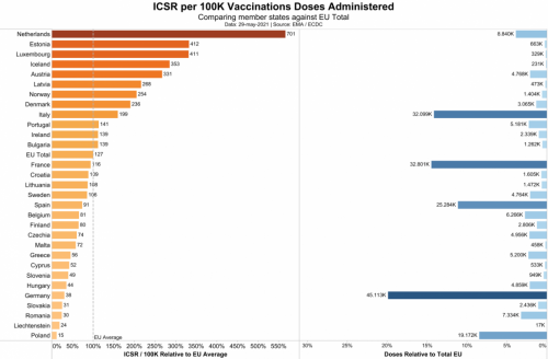 Metoda: Izračunali smo število potrebnih za cepljenje (NNTV) za preprečitev ene smrti iz velike izraelske terenske študije. Dostopali smo do zbirke podatkov o neželenih učinkih zdravil (Adverse Drug Reactions ADR) Evropske agencije za zdravila in nizozemskega nacionalnega registra (European Medicines Agency and of the Dutch National Register - lareb.nl), da bi ugotovili število primerov, ki poročajo o hudih neželenih učinkih, in število primerov s smrtnimi stranskimi učinki.