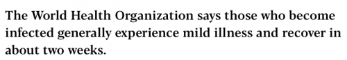 »… So lahko splošne klinične posledice Covid-19 na koncu bolj podobne posledicam hude sezonske gripe (ki ima smrtnost približno 0,1% ) ali pandemične gripe (podobno kot v letih 1957 in 1968) kot pa bolezni, podobne SARS ali MERS, pri katerih je bila stopnja smrtnosti primerov 9 do 10% oziroma 36%. "