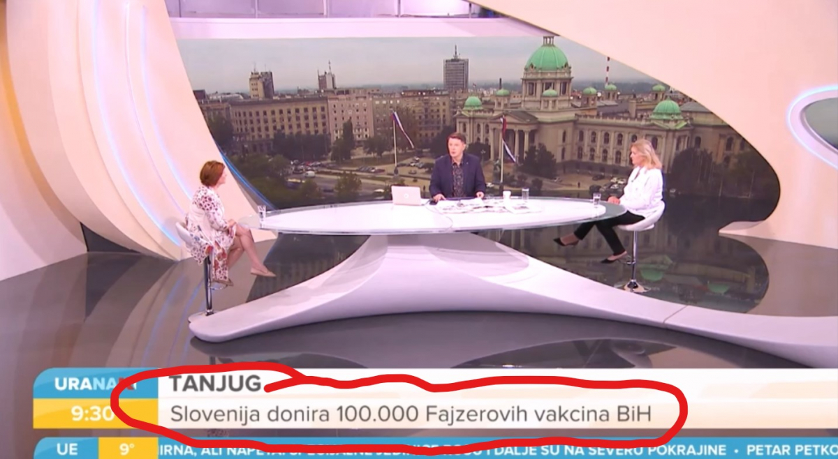 Par dni nazaj (v tujih medijih) informacija, da Slovenija donira BIH 100.000 Pfizer-jevih cepiv.