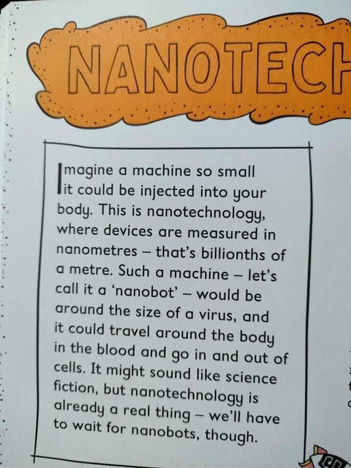 To je knjiga za 11 -letnike. Vidimo jasen primer kuhanja žab, programiranje novih generacij, da brez težav sprejmejo transhumanizem kot nekaj normalnega in naravnega. Pritegne pozornost razlaga genske terapije, nanotehnologije in grafena. Mislim, da to jasno pojasni, zakaj dajo grafen v steklenice in zakaj je pomembno, da 'fiksajo' otroke. To ni več teorija zarote, le oprani možgani ne morejo povezati kock."