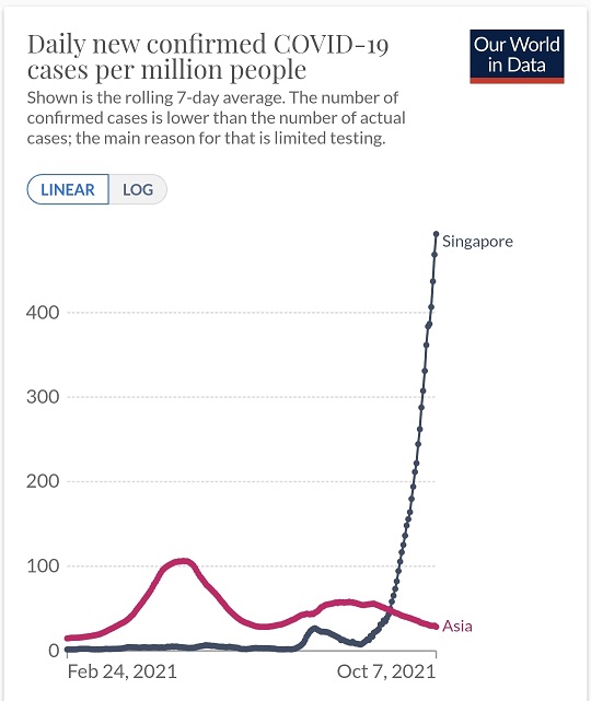 Glede na to, da je v preostali Aziji manj cepljenja, poglejte stanje pri njih, izgleda precej boljše kot v Singapurju: