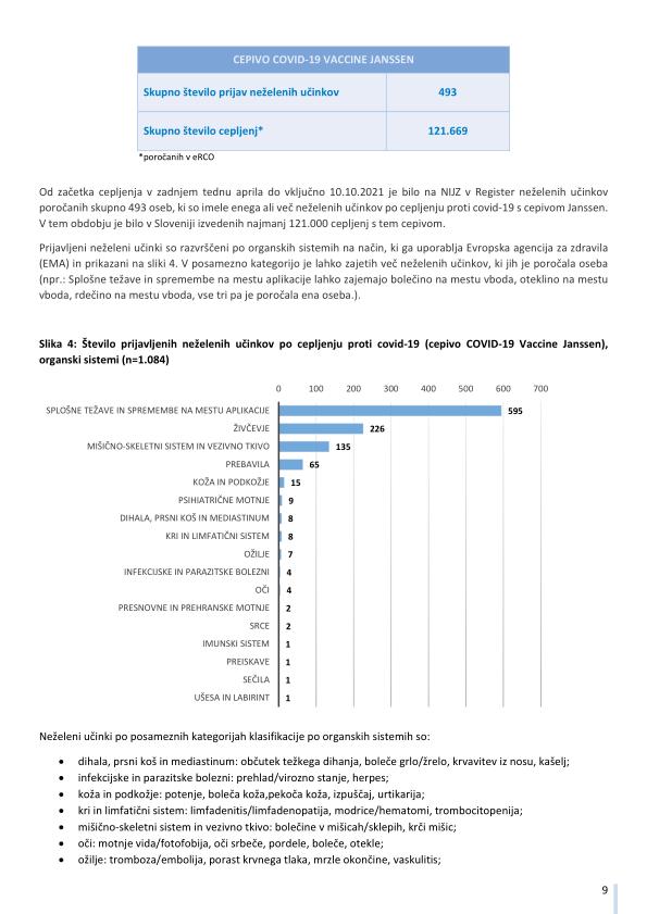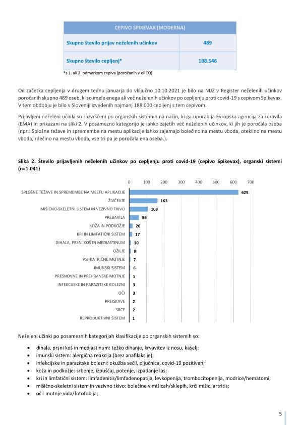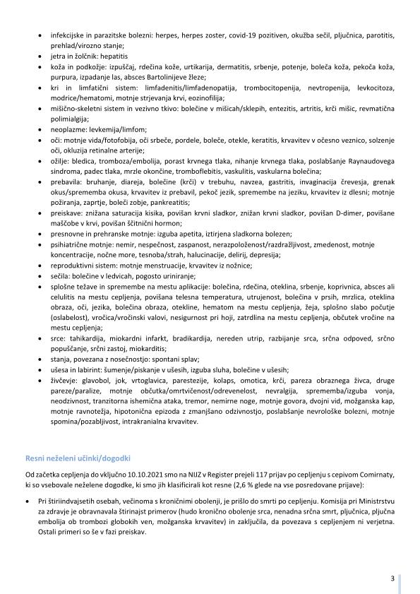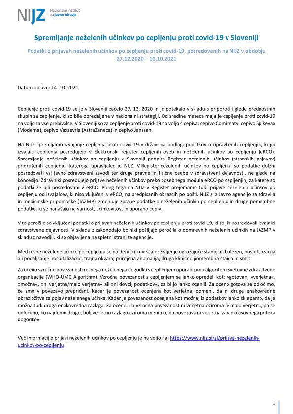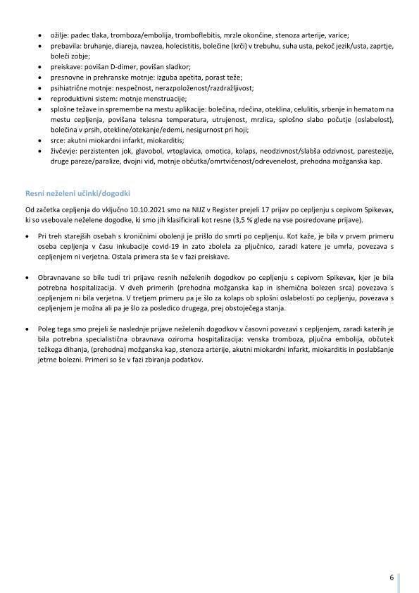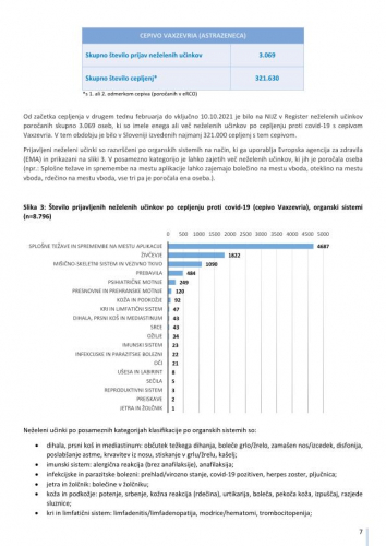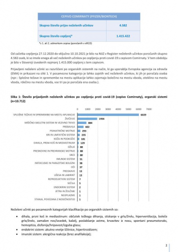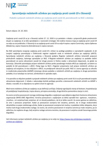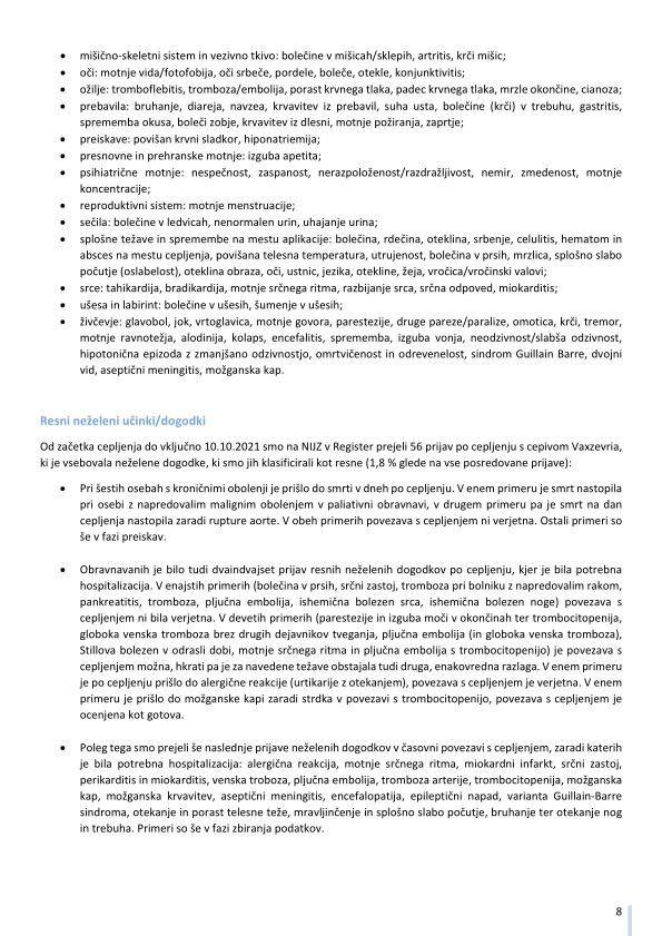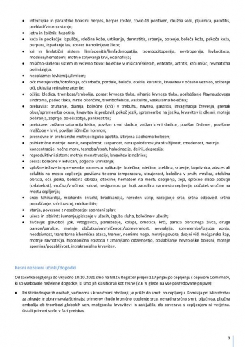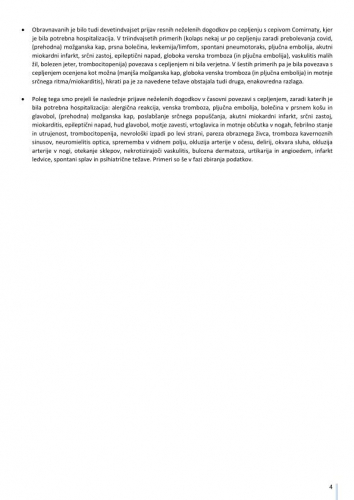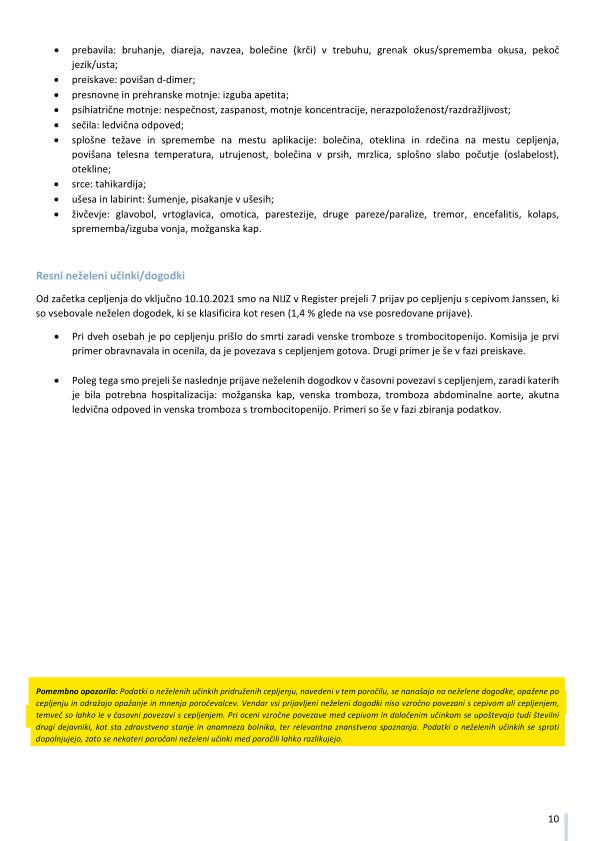 "Pomembno opozorilo: Podatki o neželenih učinkih pridruženih cepljenju, navedeni v tem poročilu, se nanašajo na neželene dogodke, opažene po cepljenju in odražajo opažanje in mnenja poročevalcev. Vendar vsi prijavljeni neželeni dogodki niso vzročno povezani s cepivom ali cepljenjem, temveč so lahko le v časovni povezavi s cepljenjem. Pri oceni vzročne povezave med cepivom in določenim učinkom se upoštevajo tudi številni drugi dejavniki, kot sta zdravstveno stanje in anamneza bolnika, ter relevantna znanstvena spoznanja. Podatki o neželenih učinkih se sproti dopolnjujejo, zato se nekateri poročani neželeni učinki med poročili lahko razlikujejo."