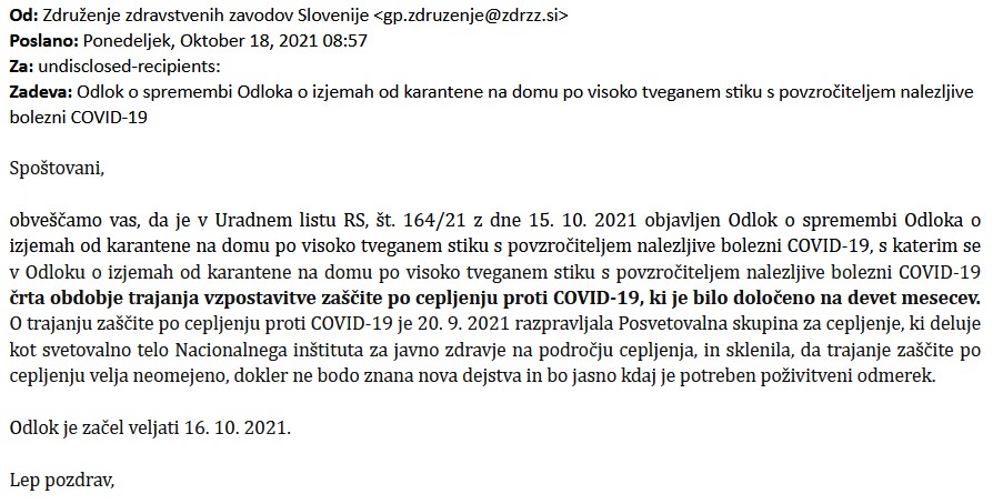 Začelo se je z direktivo od zunaj, ki naj bi bila enaka za vse, v kateri je za PCT pogoj C (cepljen) bil opredeljen tako, da ne sme biti starejši od 9 mesecev (kot npr. v Italiji). Verjetno se je zaradi prezasedenosti ter nemotenega dela vladnih organov Posvetovalna skupina odločila, da trajanje zaščite po cepljenju velja neomejeno. Torej, ni potrebe za skrb - vsi, ki delajo v vladi in vladnih organih in imajo potrdilo o cepljenju bodo lahko nemoteno nadaljevali z delom.