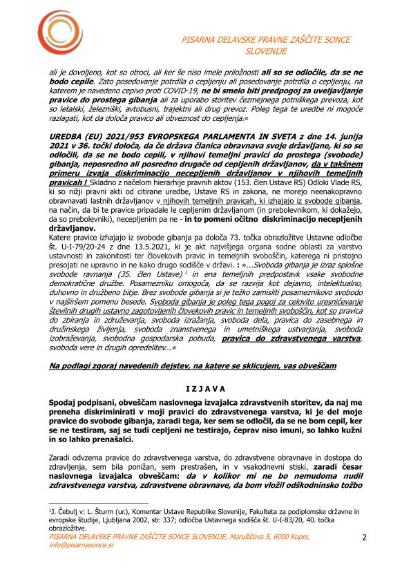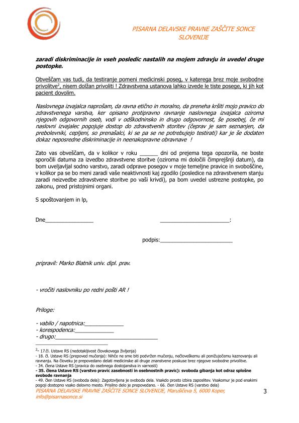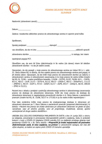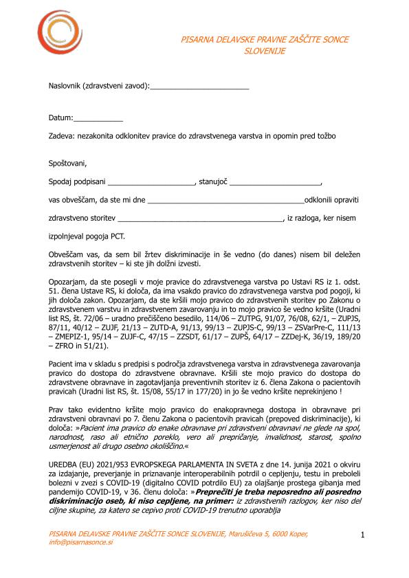 ... pa še (kot dodatek) "Zadeva: nezakonita odklonitev pravice do zdravstvenega varstva in opomin pred tožbo"