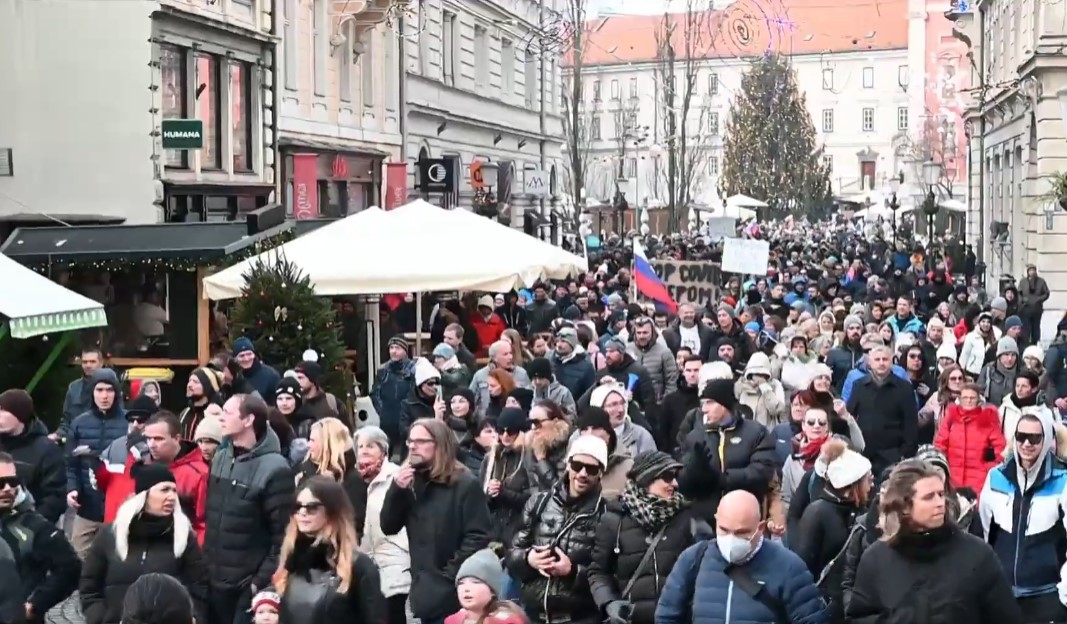 Protestniki vstopili na Božični sejem - sicer so rabili potrdilo o testiranju ali cepljenju ampak nobeden ni vedel kaj potrdilo je ...