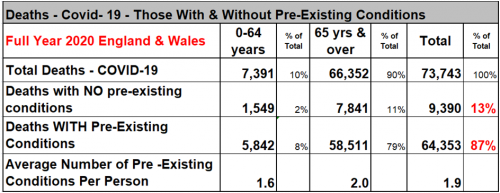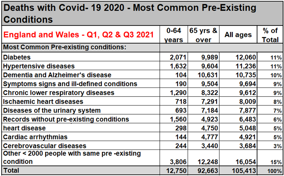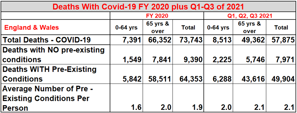 Smrti zaradi Covid-19 – Anglija in Wales – Analiza glede na že obstoječe razmere 2020 in Q1-Q3 2021
