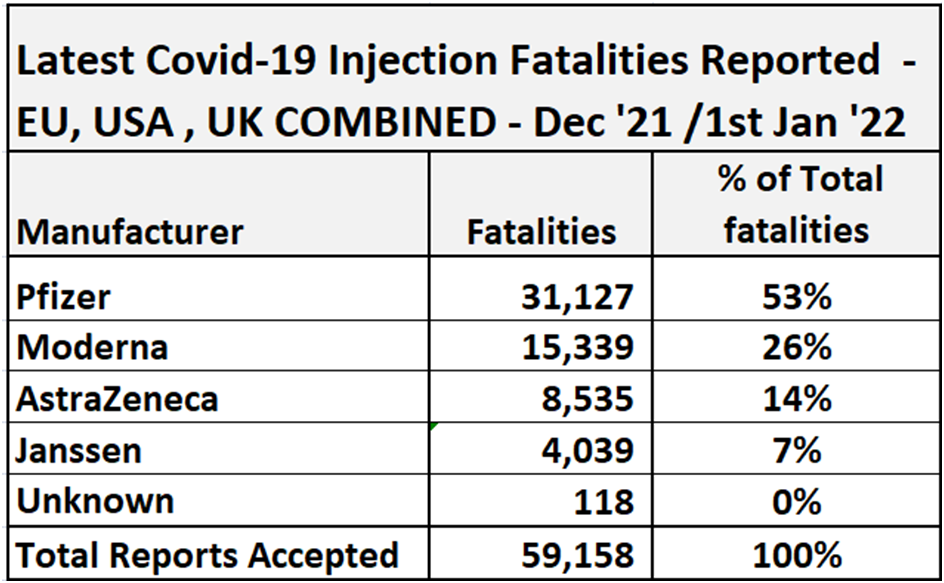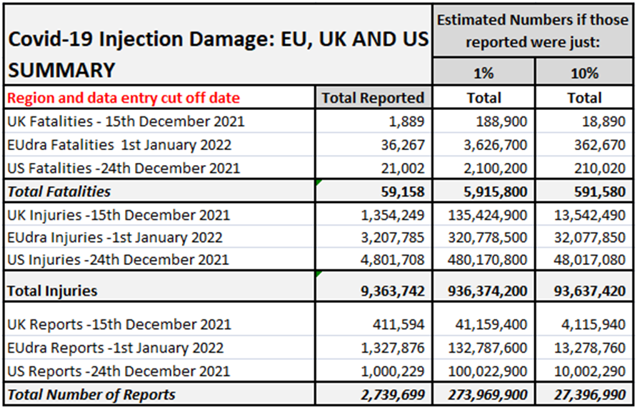 EU/ZDA/Združeno kraljestvo – 59.158 smrti zaradi injiciranja Covid-19 in skoraj 9,4 milijona poškodb, ki jih zdaj poroča več kot 2,7 milijona ljudi – december 2021.