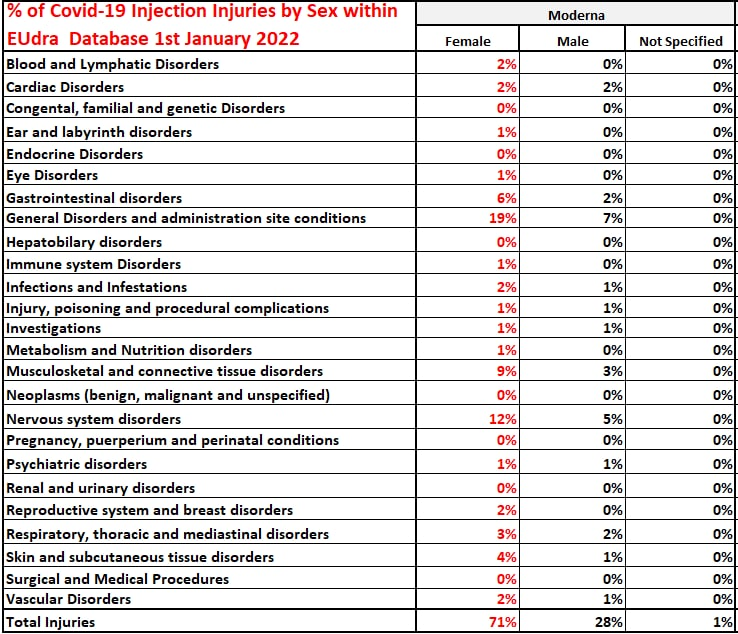 EUDRAVIGILANCE – MODERNA – 1. JANUAR 2022