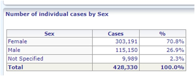 Zgornja tabela prikazuje povzetek poškodb in smrtnih žrtev v zbirki podatkov o neželenih učinkih EU po proizvajalcu, starosti in spolu