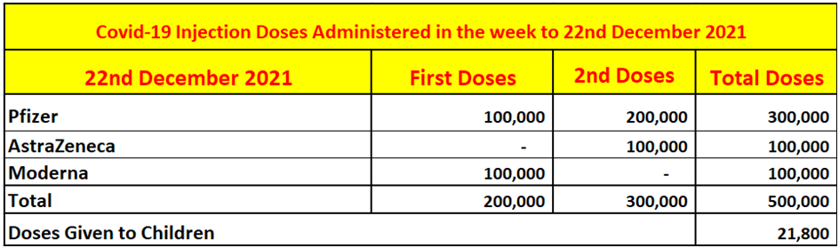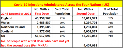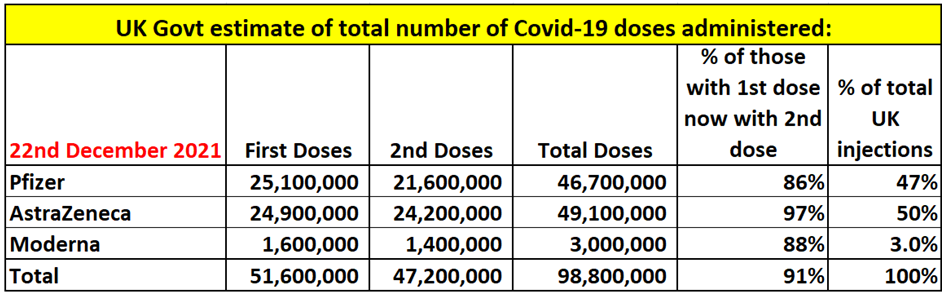 Zgornja tabela prikazuje najnovejše razpoložljive številke po MHRA, objavljene 24. decembra 2021 in že objavljene na kanalu na Boxing Day