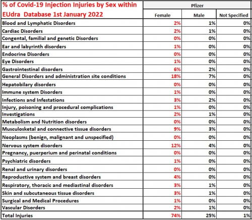 EUDRAVIGILANCE – PFIZER – 1. JANUAR 2022