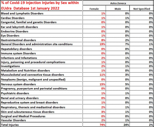 EUDRAVIGILANCE – ASTRAZENECA- 1. JANUAR 2022