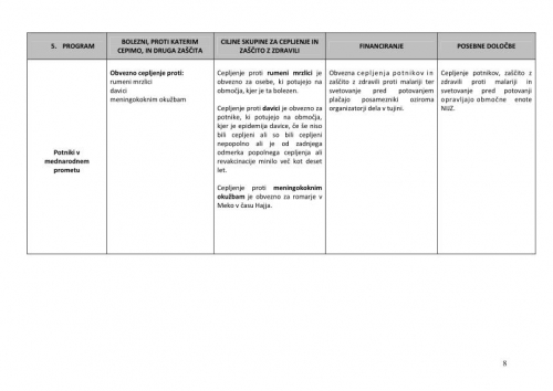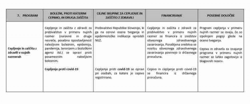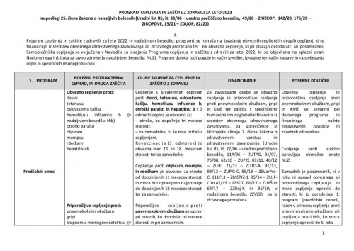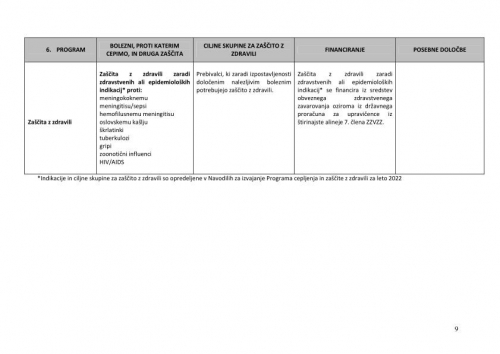 1. V Republiki Sloveniji se program izvaja na podlagi predpisanih programov za posamezne skupine prebivalcev v skladu z Navodili za izvajanje Programa cepljenja in zašèite z zdravili (v nadaljnjem besedilu: navodila), objavljenimi na spletni strani NIJZ. Navodila vkljuèujejo izvajanje obveznih cepljenj in drugih cepljenj, ki se financirajo iz sredstev obveznega zdravstvenega zavarovanja ali državnega proraèuna, obveznih cepljenj, ki jih plaèajo delodajalci ali posamezniki ter samoplaèniških cepljenj.
