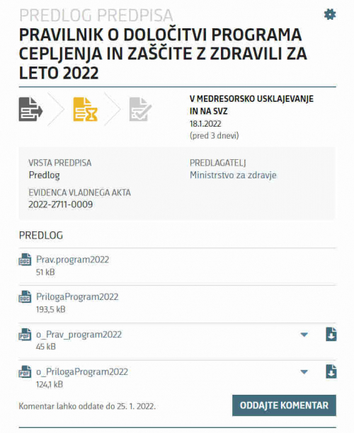 Ta program zaène veljati naslednji dan po objavi Pravilnika o doloèitvi Programa cepljenja in zašèite z zdravili za leto 2022 v Uradnem listu Republike Slovenije.