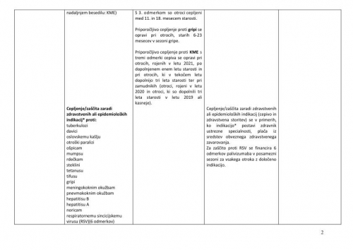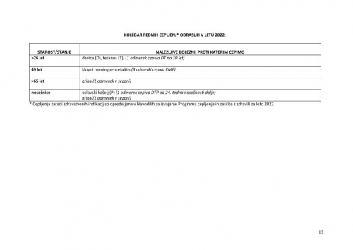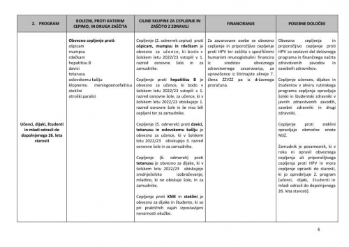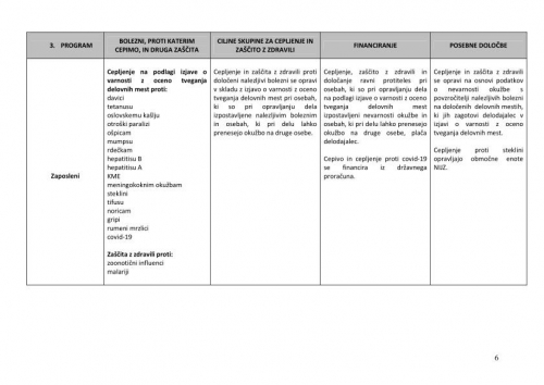 V skladu s programom je treba obvezno preveriti cepilni status in opraviti manjkajoèa cepljenja oziroma osebo napotiti na cepljenje: