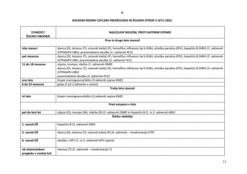 – predšolskim otrokom pred vstopom v organizirano varstvo in pred vstopom v šolo;