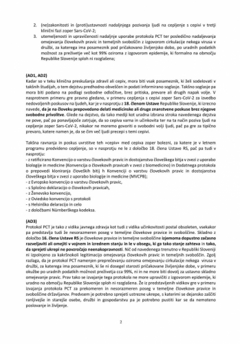 3. Ali kot pristojni organ menite, da so ukrepi, ki se na območju Republike Slovenije izvajajo v okviru »protokola PCT«, skladni z ustavo, torej sorazmerno zasledujejo legitimen cilj in ne kršijo temeljnih človekovih pravic in svoboščin državljanov?;