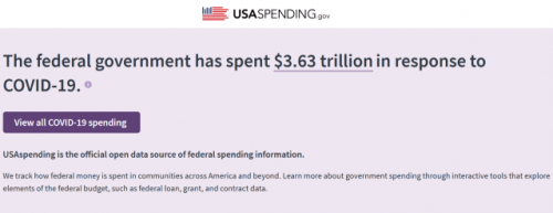 Vlada Združenih držav ima spletno stran z naslovom »Poraba ZDA«, uradno odprti vir podatkov o zvezni porabi. Glede na spletno mesto je 12. aprila 2021 vlada ZDA porabila 3,63 milijarde dolarjev "v odgovoru na COVID-19". Vendar, to niso edine informacije o Covidu, jih je mogoče najti na spletnem mestu.