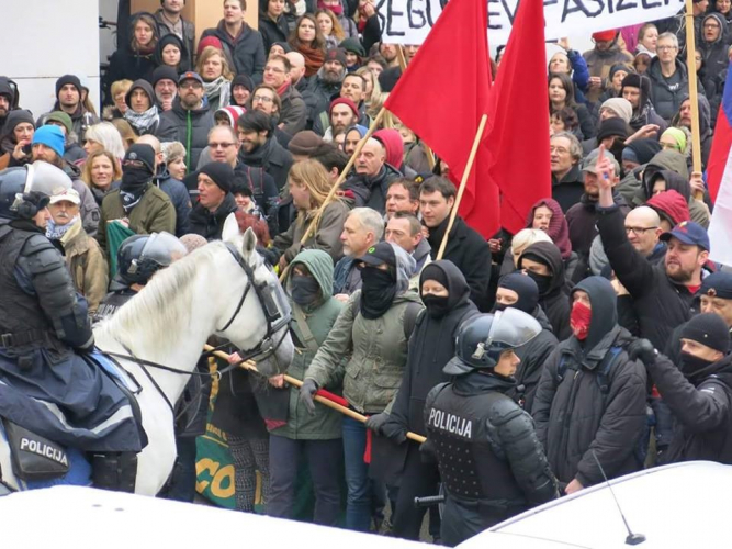 Levičarski aktivist, član Antifa “N’Toko” in desno na sliki Jernej T. Vatovec (stranka Levica)