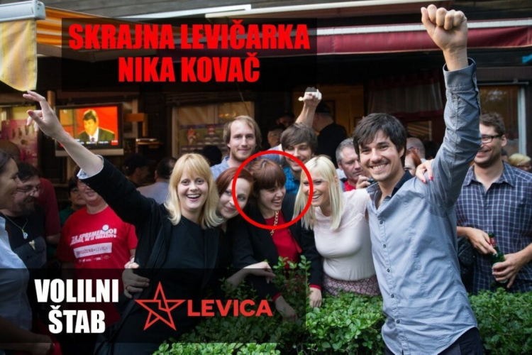 Nika Kovač v družbi Levice Luke Meseca; bila je del iniciative za demokratični socializem, leta 2014 pa je kandidirala na listi Združene levice na lokalnih volitvah (https://demokracija.si/fokus/levicarka-nika-kovac-ni-civilnodruzbena-temvec-skrajno-leva-politicna-aktivistka/ )