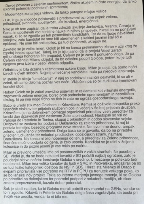 To pismo razkriva, kako je Golob prišel v ožji izbor za kandidata globoke države