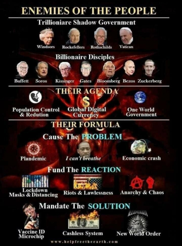 Smešno pri tem je, da sta obe družini za dve leti zaprli svetovno gospodarstvo v upanju, da bosta pospešili svoje načrte, da bi človeštvo strpali v elektronsko zaporniško taborišče, ukradli njihov denar in uvedli novo globalno suženjsko državo.