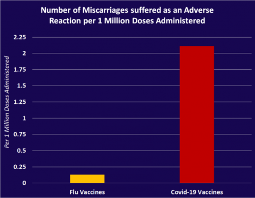 Nadaljnja študija, ki si jo lahko ogledate tukaj, je pokazala, da je tveganje za spontani splav po cepljenju proti Covid-19 za 1517 % večje od tveganja za spontani splav po cepljenju proti gripi.