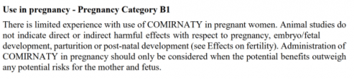 Ocenjevalec modula 4 je Pfizerju povedal, da se 'kategorija nosečnosti B2' šteje za ustrezno, in zahteval, da doda naslednjo vrsto –