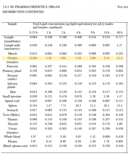 V prvih 15 minutah po injiciranju injekcije Pfizer so raziskovalci ugotovili, da je skupna koncentracija lipidov v jajčnikih znašala 0,104 ml. To se je nato po 1 uri povečalo na 1,34 ml, po 4 urah na 2,34 ml in po 48 urah na 12,3 ml.