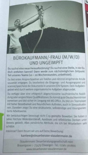 V Nemčiji se je pojavil zaposlitveni oglas, v katerem je jasno zapisano, da želi delodajalec zaposliti necepljene ljudi. In ne brez razloga. Lepo so pojasnili, zakaj želijo necepljene, v oglasu pa so zapisali: