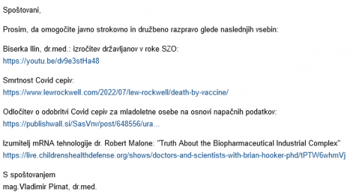 Prosim, da omogočite javno strokovno in družbeno razpravo glede naslednjih vsebin: