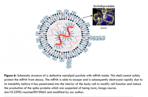 Stabilnost ovojnice lipidnih nanodelcev je tesno povezana s pojavnostjo neželenih učinkov in poškodb cepiva. Bolj stabilna kot je ta ovojnica, večja količina mRNA prodre v celice, kjer nato pride do proizvodnje koničastih proteinov. Ti rezultati se ujemajo z ugotovitvami patologov, ki so opravili obdukcije ljudi, ki so umrli zaradi poškodb s cepivom. V poškodovanem tkivu so odkrili konične beljakovine. Raziskovalci sumijo, da je koničasti protein sam po sebi strupen.
