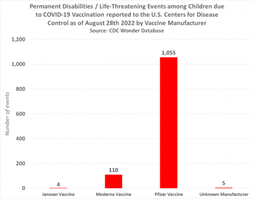 Vbod s Pfizerjem je skoraj ubil ali trajno onesposobil 1.055 otrok, vbod z Moderno 110 otrok, vbod z Janssenom pa 4 otroke.