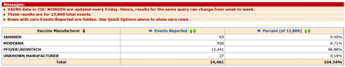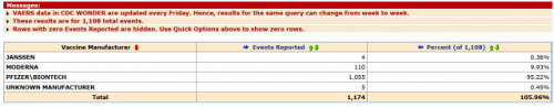 Centri za nadzor bolezni (CDC) gosti sistem poročanja o neželenih dogodkih cepiva (VAERS), ki se posodablja tedensko in ga najdete tukaj.