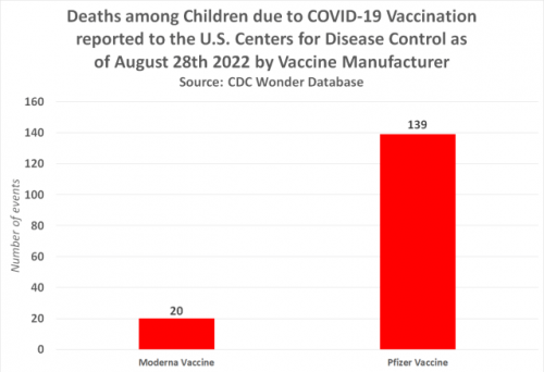 Cepivo Pfizer je ubilo 139 otrok, medtem ko je cepivo Moderna domnevno ubilo 20 otrok.